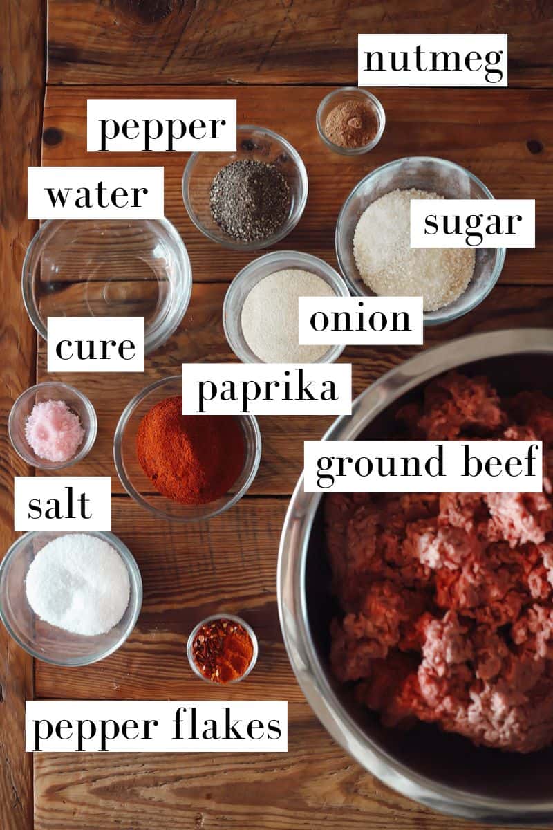 - Ground beef: We are using 80/20 hamburger for this ground beef jerky recipe in our batch today, but leaner 90/10 or even 93/7 would be ideal.