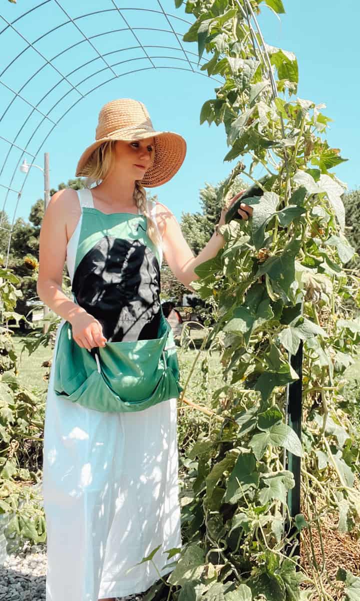 I wish I could tell you which of these garden aprons are the best option, but it's really a personal choice. I wear them all for different purposes. My Roo garden apron is my go-to for picking cucumbers and veggies, while the washed cotton smock is ultra light and flowy when it's hot outside and I'm simply watering or pulling weeds.