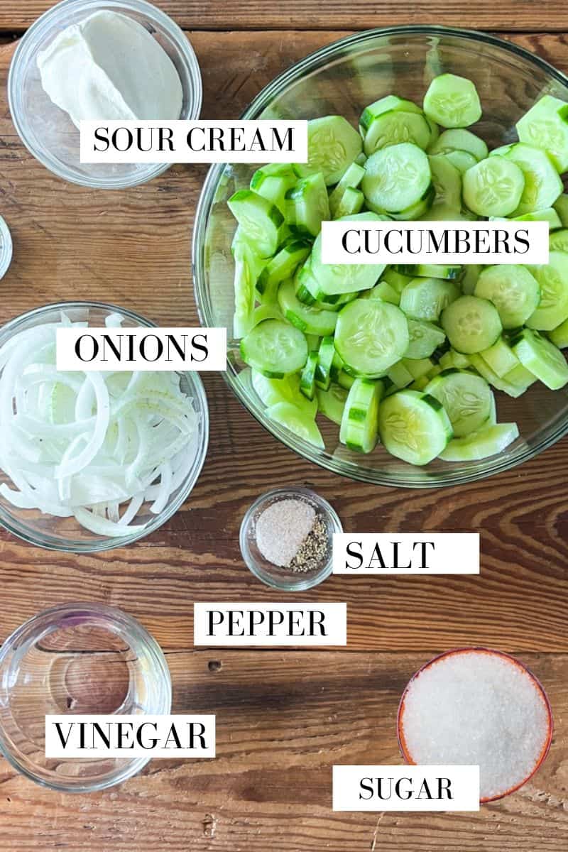 An old-fashioned cucumber salad recipe is the perfect thing to have in your back pocket for a dinner party or just a regular ol' Tuesday night. Dressed with a simple vinegar and sour cream dressing over thinly sliced cucumbers and onions, this is a creamy and delicious summer classic. If you've been searching high and low for a cucumbers onion vinegar sugar recipe just like grandma used to make, this is it!