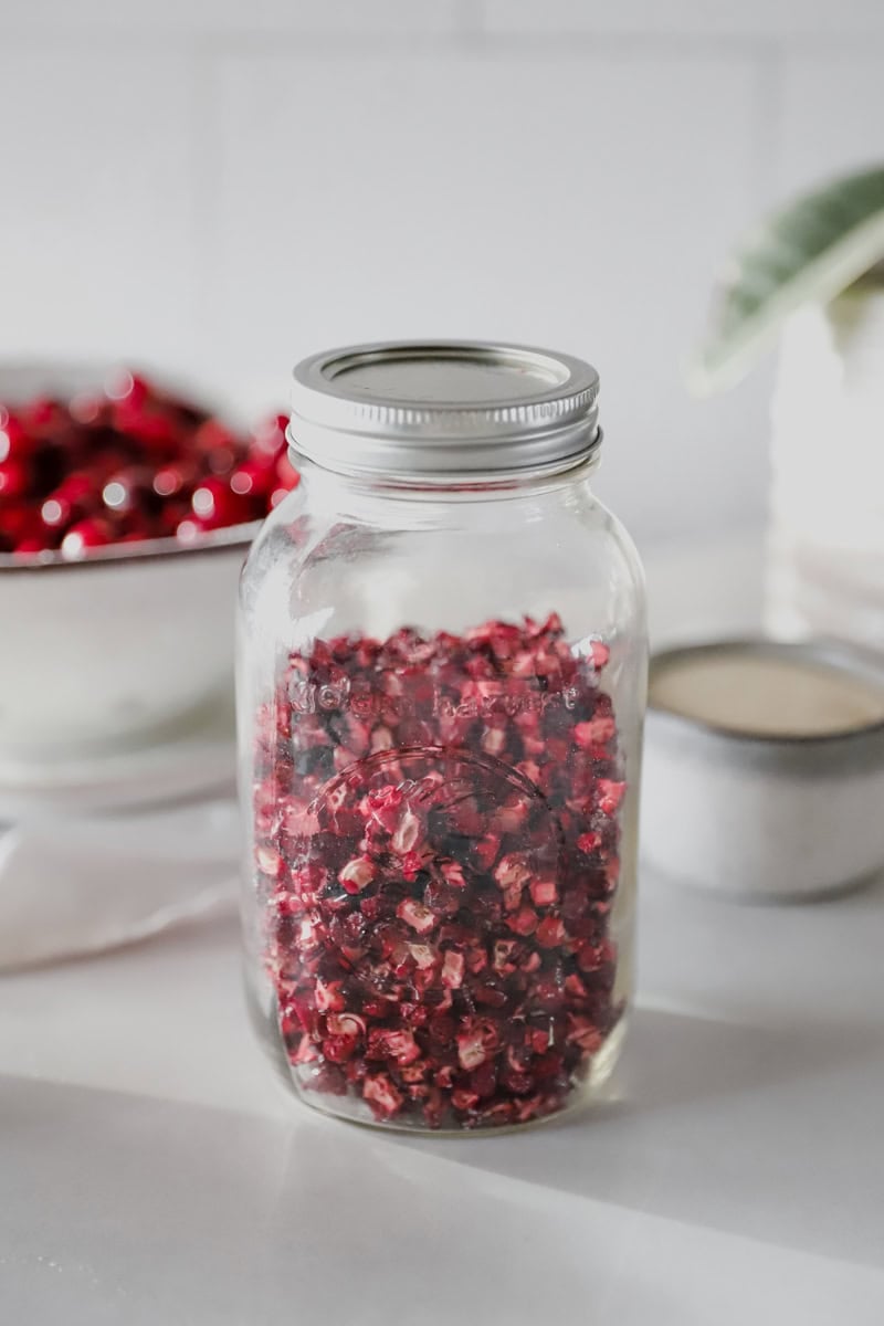 Some of my favorite recipes to use these delicious cranberries is in cranberry orange cookies, sourdough batard, and sourdough bagels with dried fruit! You can also mix them with your homemade trail mix. I can't tell you how great it has been to have them in my pantry this time of year!