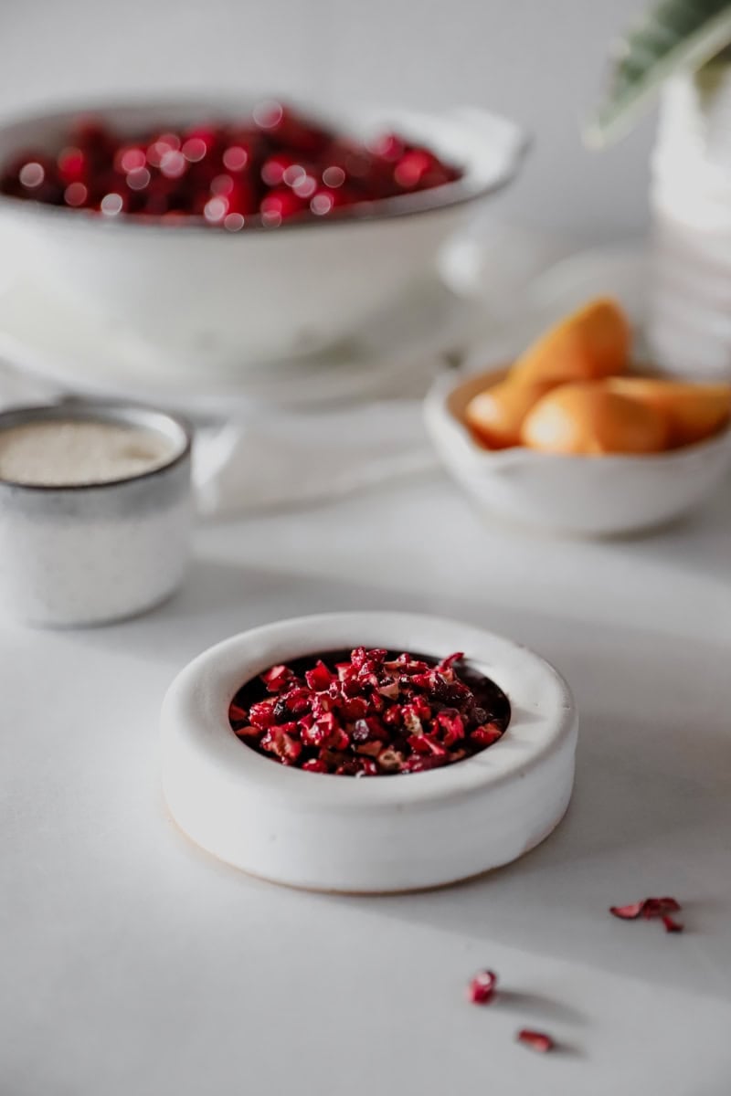Your classic dried cranberry only requires cranberries, unless you choose to add some extra ingredients for flavor. Personally, the fresh cranberries are really tart, so I like to add a little squeeze of fresh citrus juice and a sprinkle of sugar.