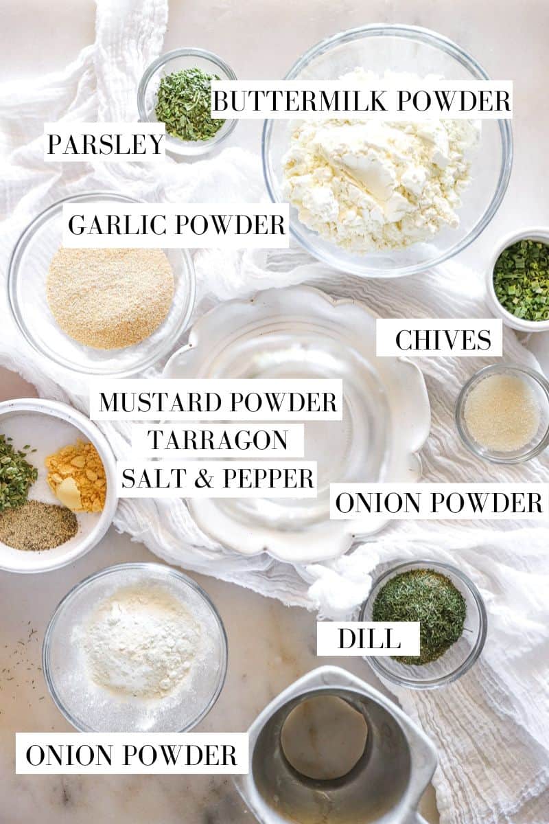- Dried parsley, chives, dill & tarragon - Choose dehydrated or freeze dried herbs to avoid a clumpy mixture.