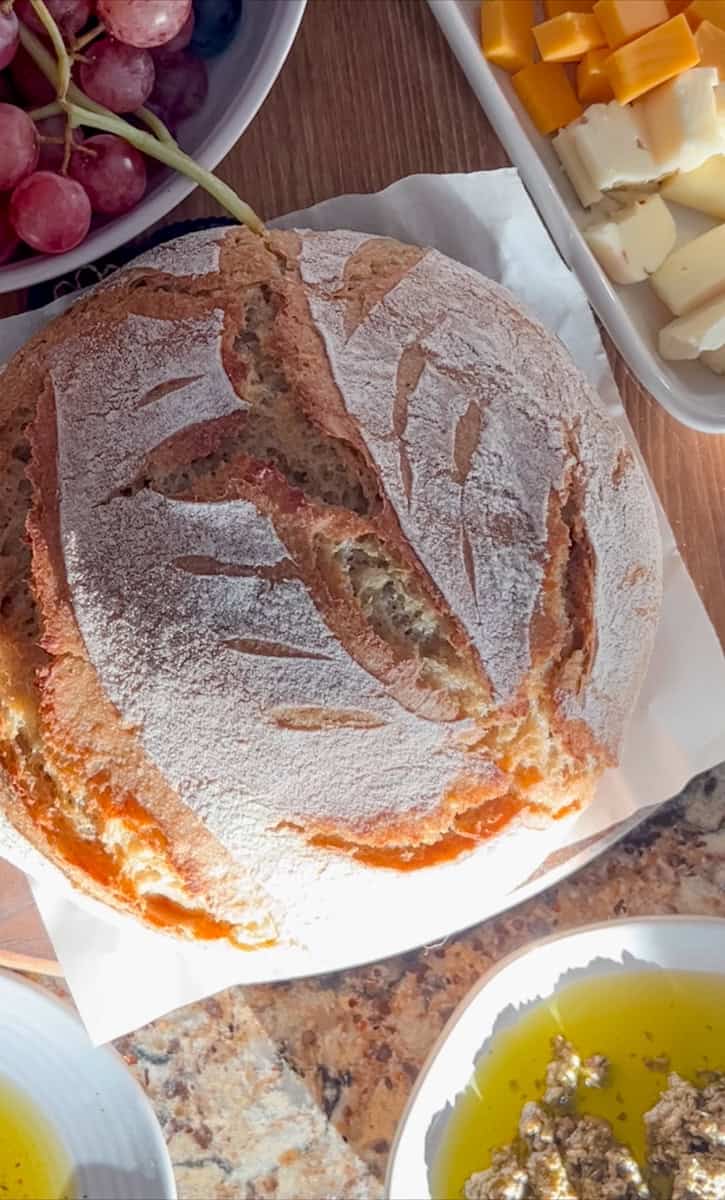 Hint: When my sourdough begins to go stale, I slice it into cubes and toss it in a freezer bag. Once I have enough to make a batch of croutons, I pull the frozen bread out and bake it!