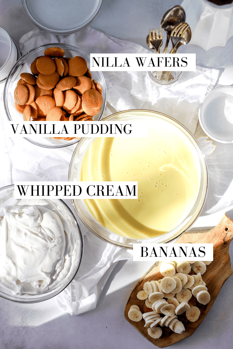 Ingredients for No Bake Banana Pudding Dessert