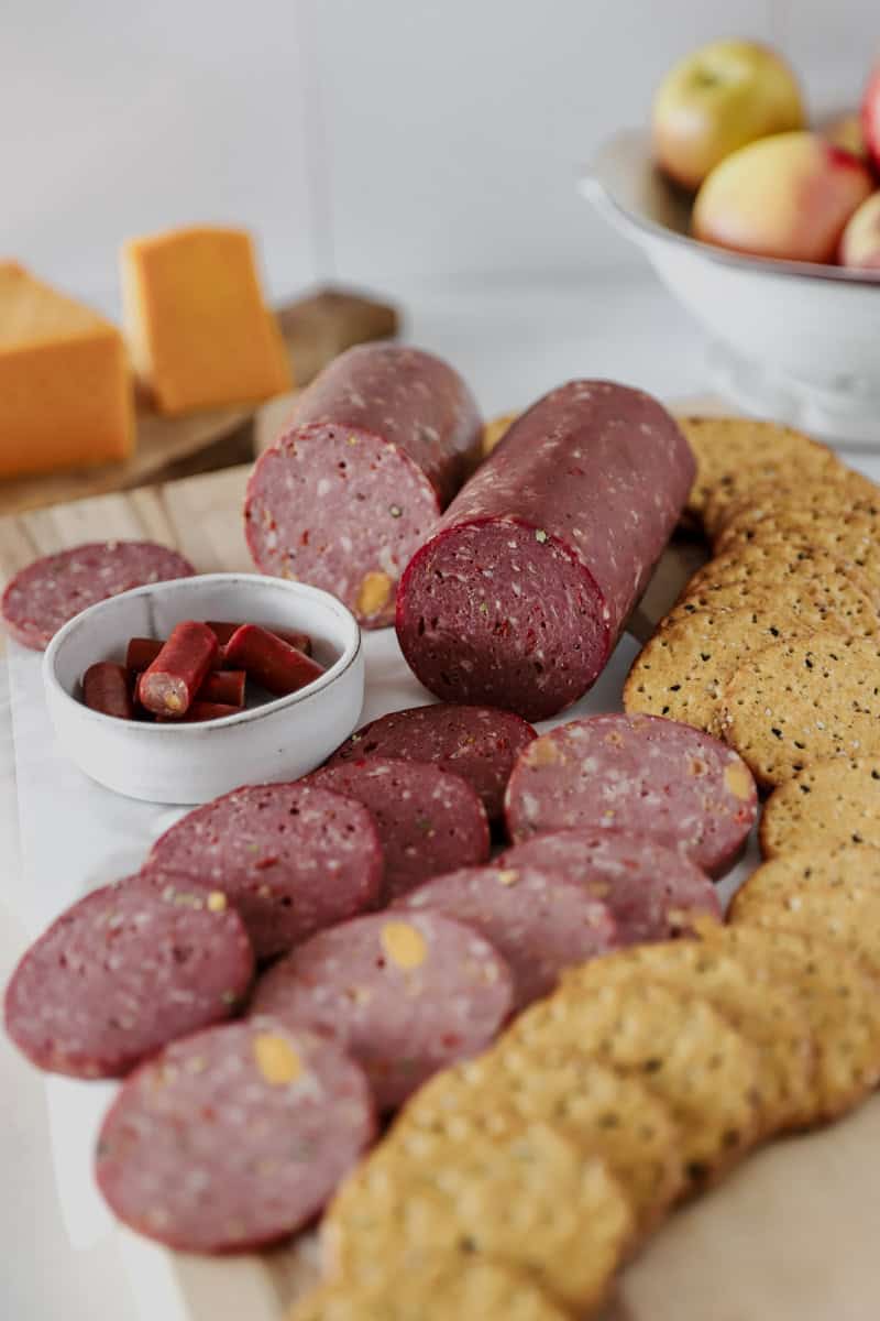 When life hands you a freezer full of ground venison, you get creativeāat least thatās the motto around here. Aaronās venison summer sausage with jalapeƱo and cheddar has become a favorite in our house, and itās no wonder why. Itās smoky, savory, and just the right amount of spicy, with melty pockets of cheddar that make it irresistible.