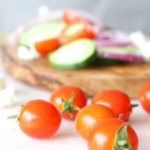 - No lettuce? no problem! Arrange cucumber slices, halved cherry tomatoes, kalamata olives, and feta cheese. Gently toss it all together with a greek dressing and fresh chopped oregano.