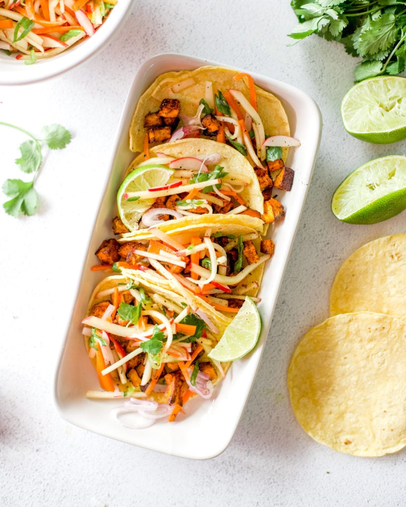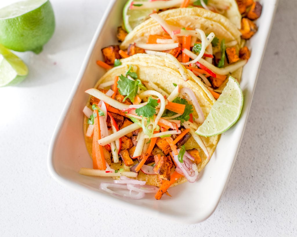 These vegetarian sweet potato street tacos are fast and easy, full of bold flavor! Everyone will love this plant based dinner idea.